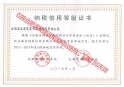 安徽省國(guó)家稅務(wù)局2012-2013納稅信用等級(jí)證書(shū)